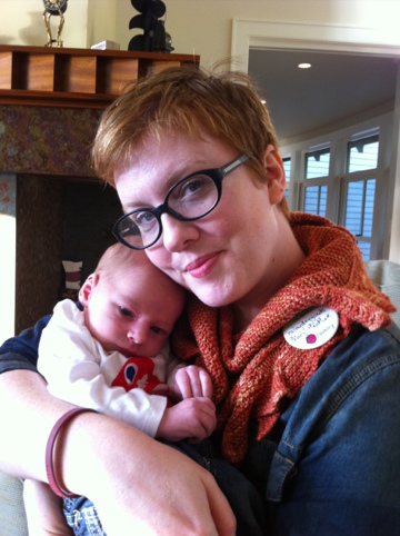 Auntie Sparkli held him for me at meet-ups (she also filled in for me at Ravelry while I was on maternity leave).