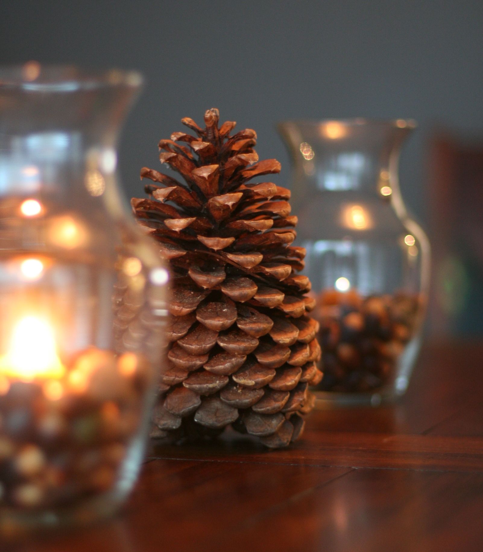 And then, I put them out on the table, but it needed just a little something extra, so I found the pine cone Jason brought back for C1 from Tahoe a couple of years ago. It tied everything together nicely.